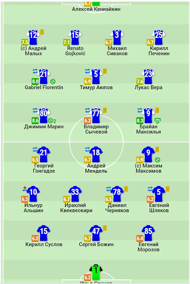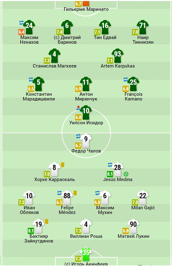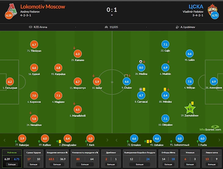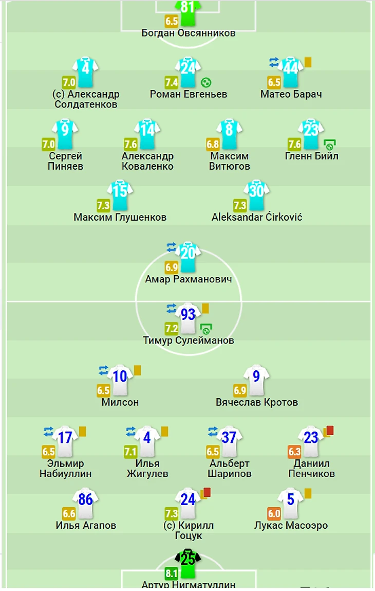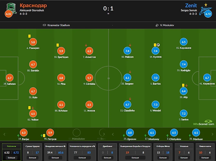3) Артём Карпукас 6,95........................................................................Виллиан Роша 7,4