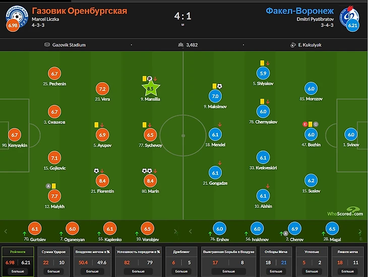 Оренбург 4 : 1 Факел