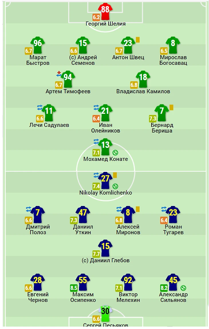1) Мохамед Конате 7,25........................................................................Максим Осипенко 8,5
