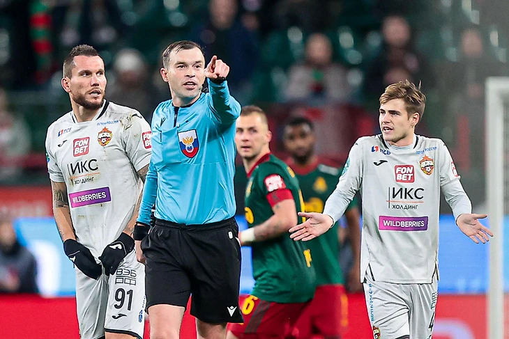 На 28-й минуте судья Артём Любимов не вынес предупреждение Дмитрию Баринову, когда тот в верховом единоборстве с Федором Чаловым ударил нападающего ЦСКА рукой в голову.