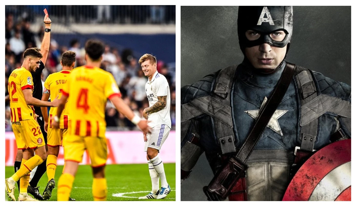 На матч с «Жироной» Тони Кроос вышел в футболке с Капитаном Америкой: и тут же получил свое первое удаление в карьере🛑