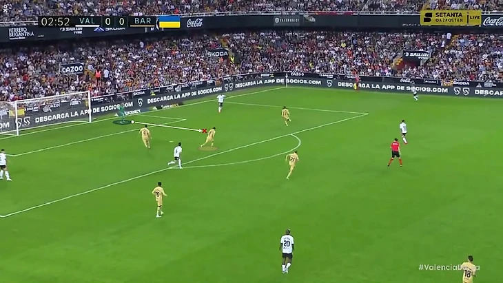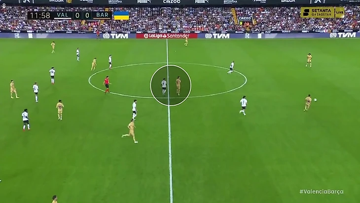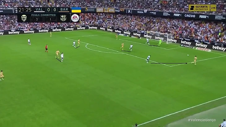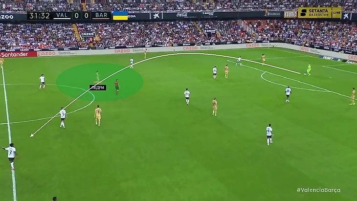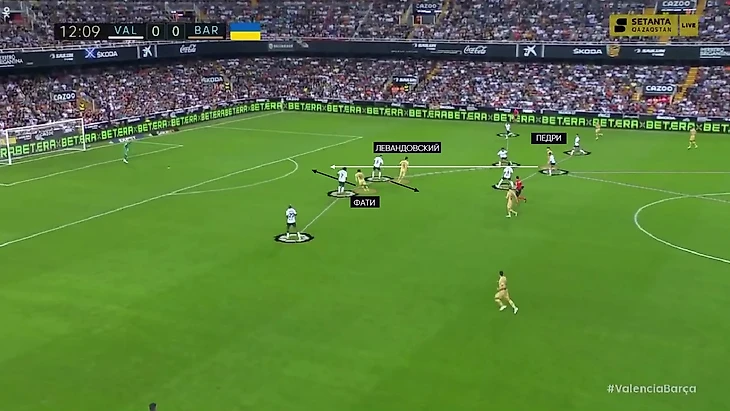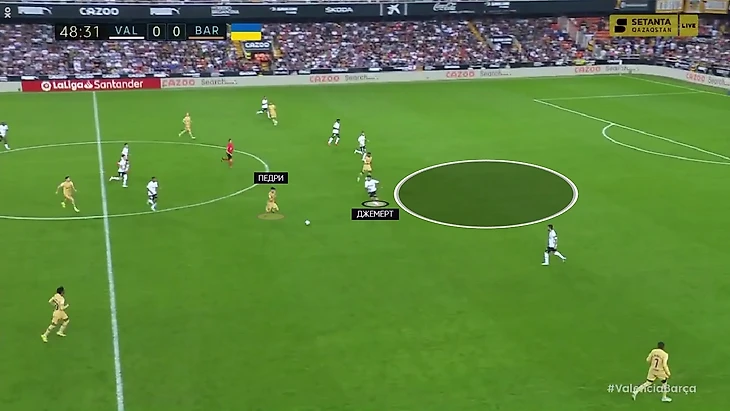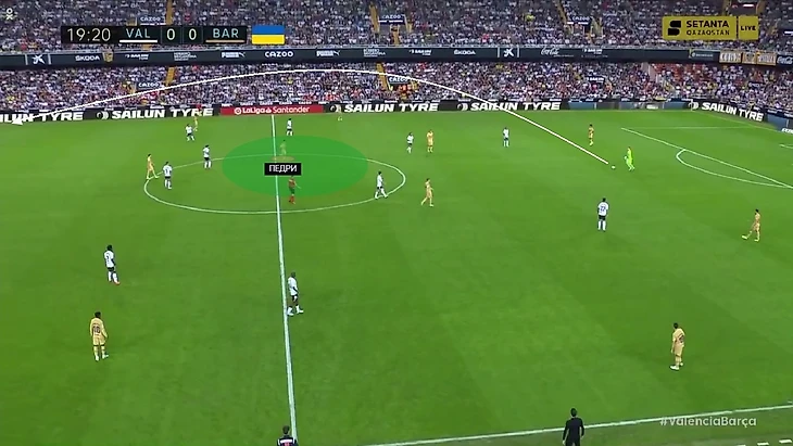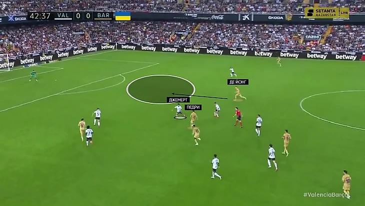 И если свобода Бальде действительно похожа на задумку, то некоторые эпизоды со свободным Педри можно считать ошибкой «Валенсии». В моменты, когда мяч у тер Стегена, задача «Валенсии» – перекрыть все возможные варианты в центре, однако мы видели эпизоды, когда Педри в центре поля свободен: