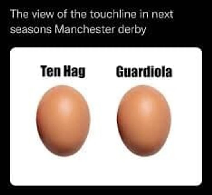 Долгое время Пеп был главным обладателем лысины в АПЛ, но этим летом все изменилось. Главных соперников «горожан» возглавил Эрик тен Хаг, который работал с Гвардиолой в «Баварии» в начале своей карьеры. И это еще один тренер, который славится своим гладким скальпом. Его переход в АПЛ вызвал восторг у некоторых фанатов как раз из-за его прически, ведь теперь обе стороны Манчестера возглавляют лысые тренеры. В соцсетях появилось немало уморительных мемов на эту тему: