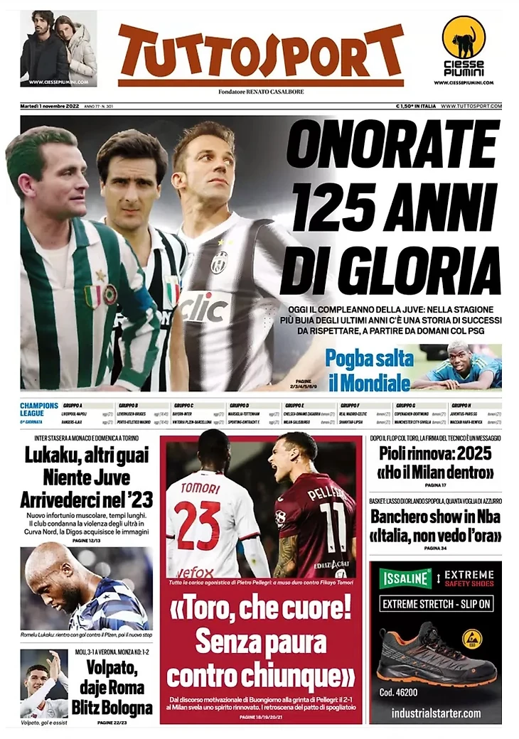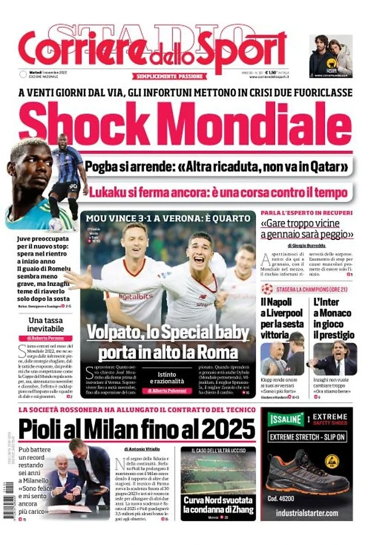 За двадцать дней до начала, травмы оставляют в кризисе двух супер звёзд. Погба сдался: «Ещё одно падение, не поеду в Катар». Лукаку снова травмирован: это бег против времени. «Юве» опасается из-за новой травмы: надежда на возвращение в начале года. Травма Ромелу кажется менее серьёзной, но Индзаги опасается вновь получить его только после перерыва.
