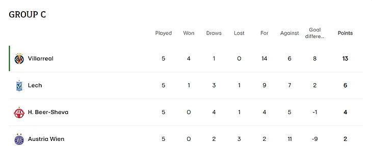 После пяти туров «Лех» остается на втором месте в группе, опережая «Хапоэль» на два очка. В последнем туре познаньцы дома примут «Вильярреал», который уже обеспечил себе 1-ое место в группе С, «Хапоэль» же дома примет «Аустрию». Расклад на последний тур оставляет познаньцам неплохие шансы на выход из группы. Неизвестно захочет ли тренерский штаб испанцев везти всех основных футболистов в Польшу. Начало поединка назначено на 21:00 по местному времени (23:00 мск), поэтому домой футболисты «желтой подлодки» вернуться только в пятницу, а в воскресенье «Вильярреалу» предстоит сыграть в чемпионате против «Мальорки».