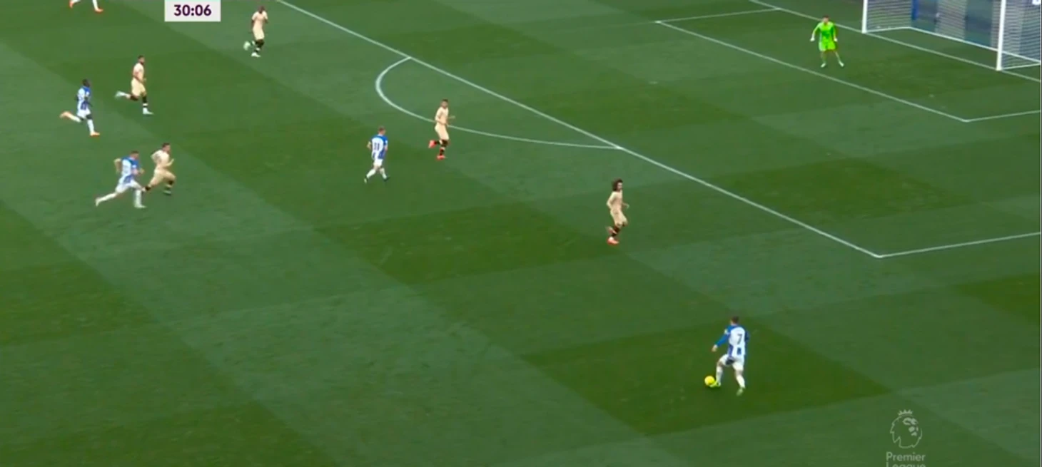 Первый тайм Брайтон посвятил себя стандартам, при этом это выражалось во всем. Главным пример будет поведение вратаря чаек, Роберта Санчеза, который при возможности избегать удара от ворот, предпочитал, чтобы команда начинала и перестраивалась для начала атаки именно с удара от ворот.