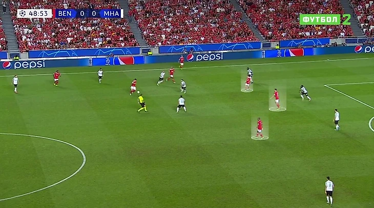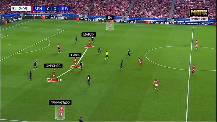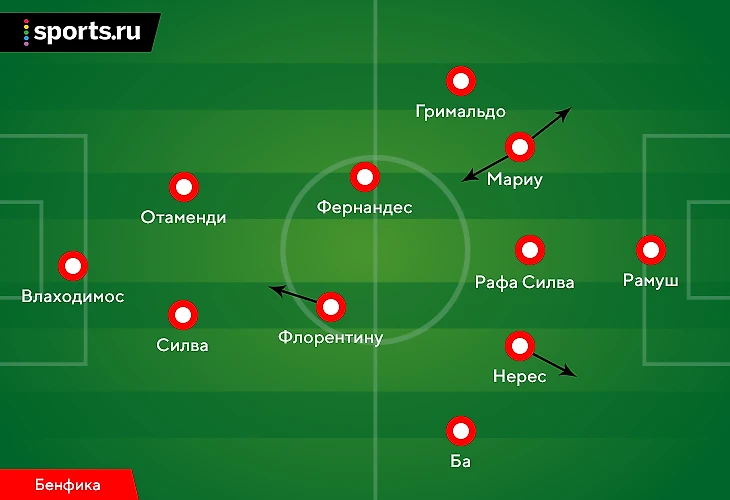 • Полная заменяемость внутри комбинационной тройки. Рафа Силва стартует в центре, но может оказываться ближе к любому из флангов. Главное, чтобы все зоны заполнялись.