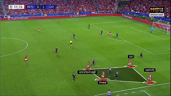 Для такой системы важно тотальное отсутствие пассажиров. В «Бенфике» с этим отлично: все работают и способны давать нужный объем (да-да, включая Жоау Мариу – он прямо пашет). Вместе с блестящей организацией Шмидта получился потрясающий результат и уникальный игровой рисунок.