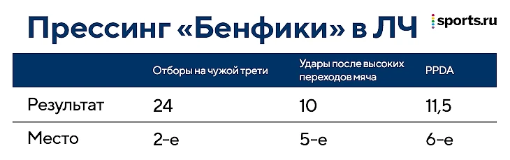 Несмотря на формально трудную группу, «Бенфика» выделилась по прессингу в масштабе всего турнира: