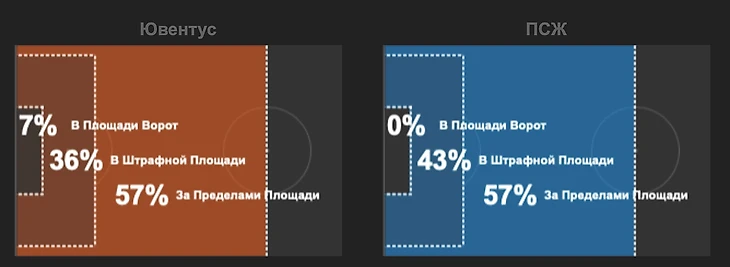 Сразу следует отметить - наконец появилась отличная демонстрация необходимости нарабатывать навык дальних ударов. И Ювентус, и ПСЖ намертво закрыли на первый тайм свои оборонительные позиции, поэтому единственное, что было доступно для нападающих - дальние удары. Впервые в этом сезоне Ювентус лупил из-за пределов штрафной куда чаще, чем изнутри. Однако ПСЖ сумел в такой ситуации забить, а Юве - нет.