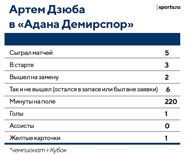 Тогда же пошли первые слухи, что Дзюба может уйти из команды. Президент «Адана Демирспор» все отрицал.