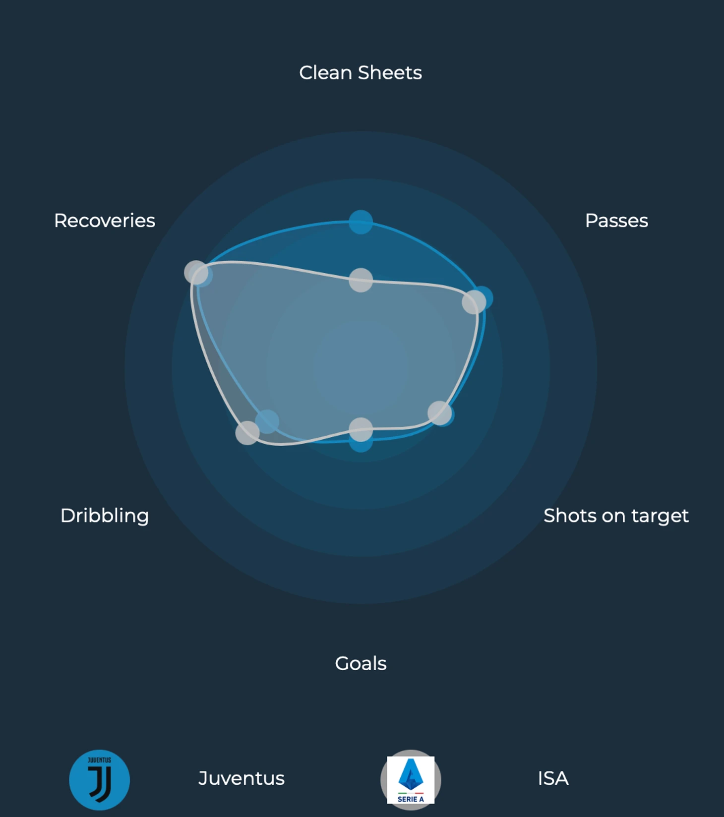 И все же Ювентус демонстрирует явный прогресс по сравнению с образцом себя же сентябрьского покроя. Из 13 матчей команда сыграла всухую в 8, за игру в среднем пропускает 0,62 гола, забивает 1,5 гола за игру. Фактически во всех показателях туринцы опережают средние по всей Серии А.