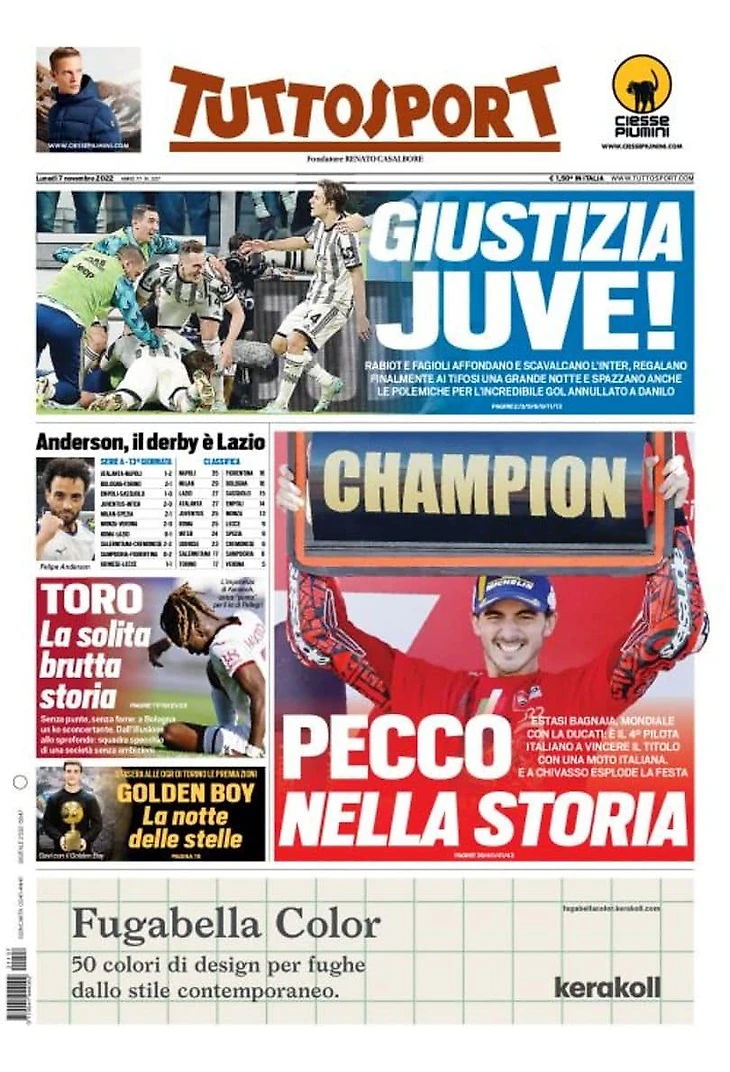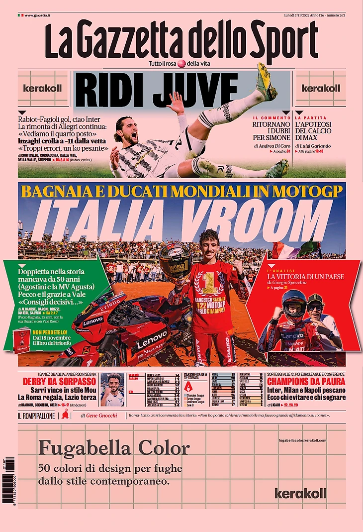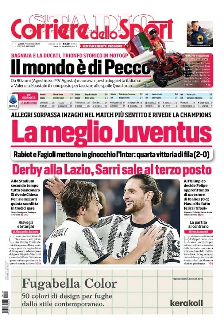 Лучше «Ювентус». Заголовки Gazzetta, TuttoSport и Corriere за 7 ноября