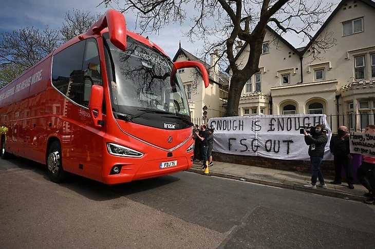 Болельщики «Ливерпуля» протестуют против своих владельцев FSG после скандала вокруг Европейской Суперлиги (Фото: Оли Скарфф/AFP)