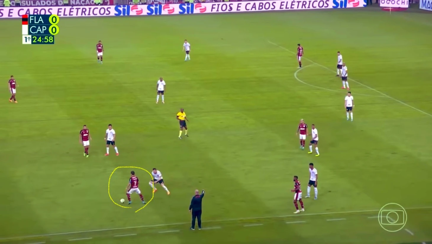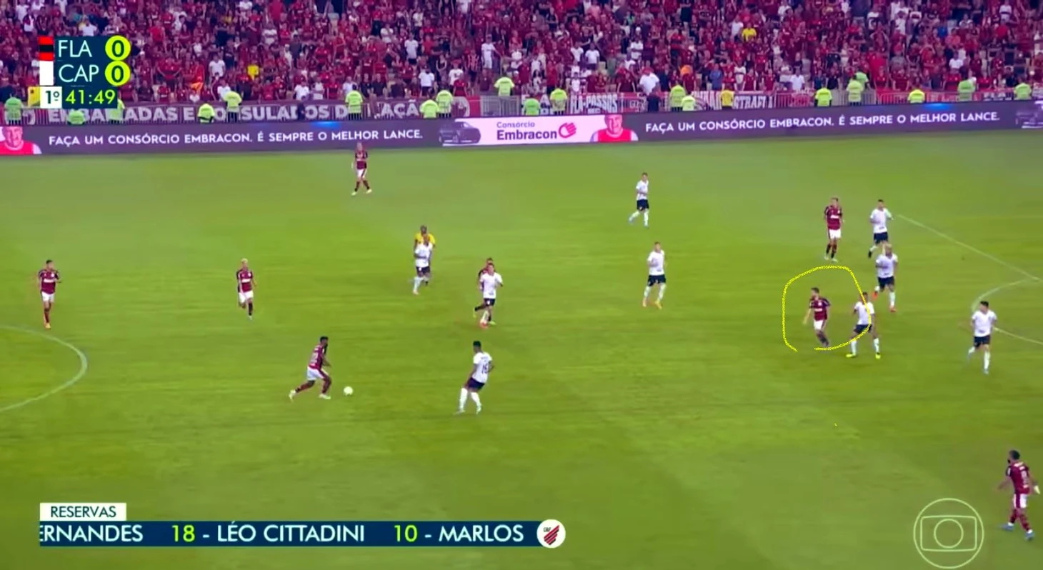 Левый же латераль должен оставаться "домоседом" и концентрироваться на обороне в тройке с загейро. Когда был жив-здоров Арана, то можно было бы делегировать ему эту роль-он лучший латераль Бразилейрао по продвижению и обострению.