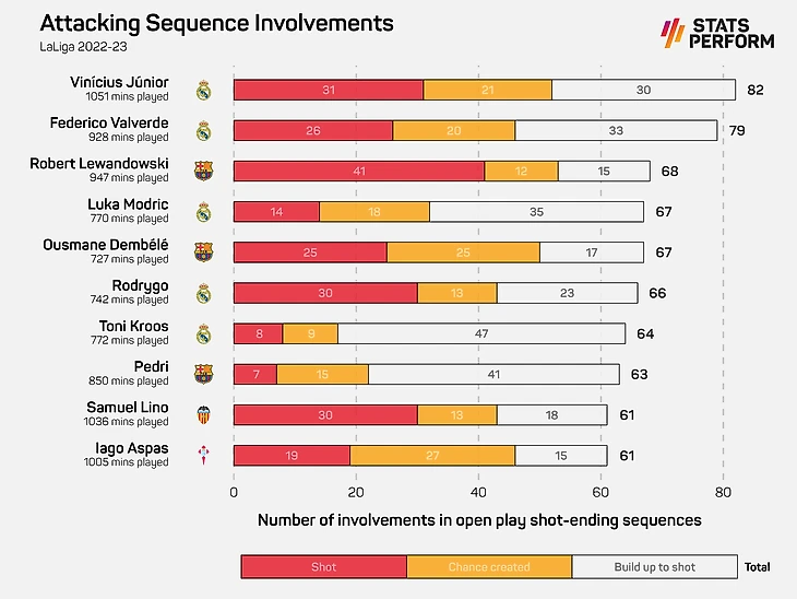 Винисиус Жуниор– игрок, поучаствовавший в наибольшем количестве ударов в этом сезоне в Ла Лиге (82). Ну насчет него в заявке сомнений не было.