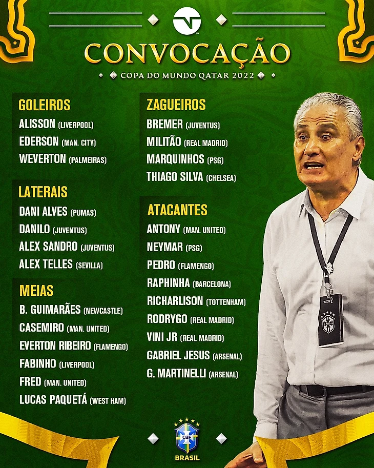 На выходных забурлило, начались инсайды. Хотя давайте будем честны-реально под вопросом были 3 фамилии. UOL поведал читателям в понедельник, что список верстался аж до ночи, Тите и его штаб никак не могли определиться-кто будет лишним в тройке Дани Алвес-Бремер-Вериссимо. И вот за час раньше анонсируемого Бразилия узнала избранных.