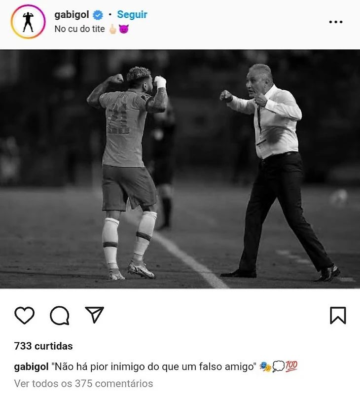 Габриэл, чтобы предъявлять претензии к тренеру надо быть звездой калибра Ромарио или на худой конец Эдмундо. И важно-надо проявлять себя в сборной. Уж кому как ни Габиголу давали шансы раз за разом, дали отыграть Копу. "Что, браток, каков итог? Обмишурился чуток?" (Л. Филатов)