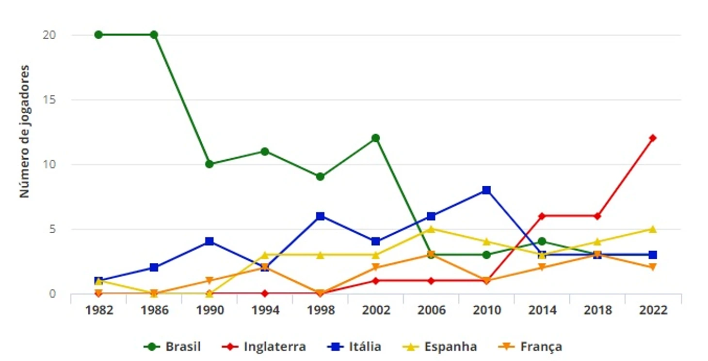 Какие лиги доминируют при формировании состава Селесао. АПЛ становится "родной" лигой для бразильцев.