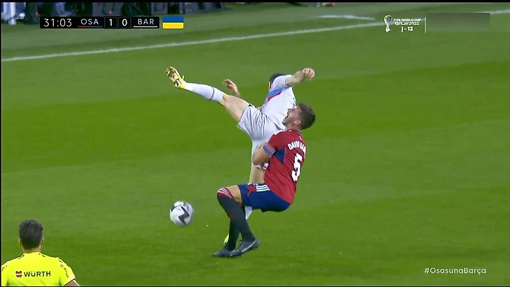Роберт очень жестко вылетел в соперника в борьбе за верховой мяч, да еще и врезал локтем в лицо.