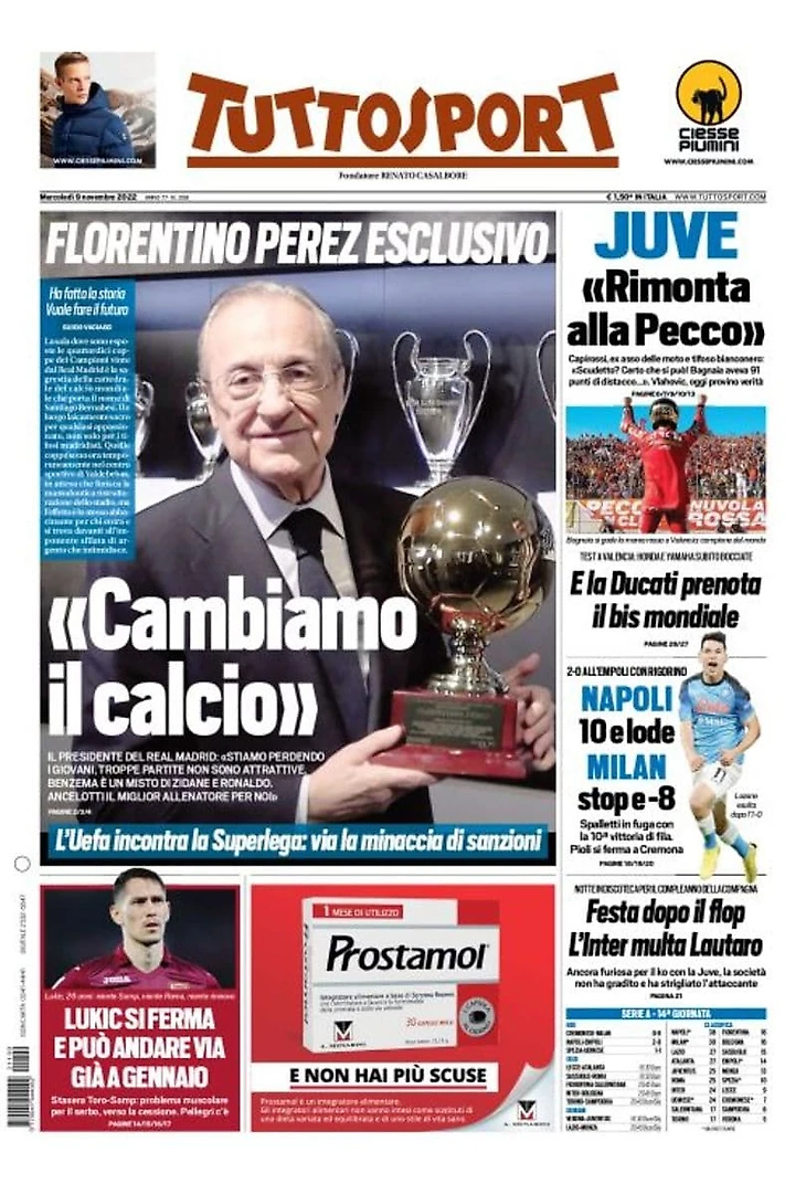 Чемпион года. Заголовки Gazzetta, TuttoSport и Corriere за 9 ноября