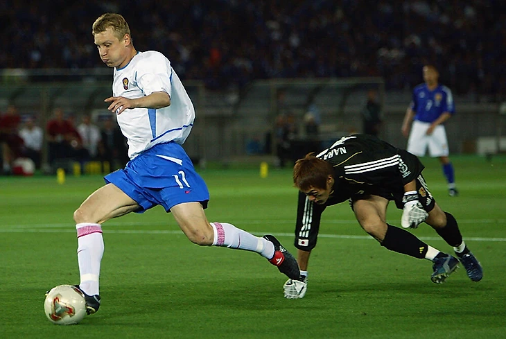 • 14 июня 2002-го. Нападающий сборной России Владимир Бесчастных обыграл вратаря японцев Сейго Нарадзаки и пробил в сетку – но лишь сбоку. Япония выиграет 1:0.