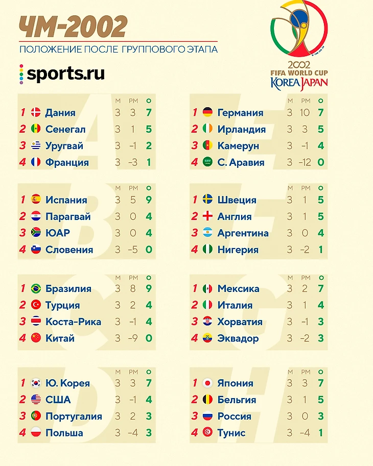 В отличие от того Евро, который внезапно ворвался в мою жизнь в 8 лет, ЧМ я ждал с нетерпением и следил еще с этапа отбора во многом благодаря двум вещам. Во-первых, соседский дядька работал водителем в типографии и подарил мне огромный крутейший плакат с сеткой самого ЧМ и всего отбора к нему, не только Европы, но и в том числе всякие Сент-Китс и Невисы. Я это всё прилежно заполнял и наверное наизусть тогда выучил. Во-вторых, это был единственный турнир, когда сборная Беларуси до последних туров претендовала на выход хотя бы в стыки (совпало то, что была не самая сильная группа и в сборной были неплохие футболисты). Даже сходил на один матч с дедом, когда в 1 туре обыграли Уэльс. И до сих пор помню все матчи отбора.
