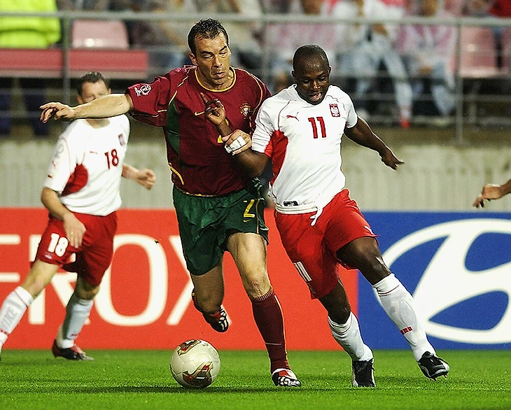• А это Эммануэль Олисадебе – первый чернокожий футболист в истории сборной Польши. Натурализованный по протекции легендарного Бонека форвард стал героем квалификации – восемь голов. Олисадебе добавил и на ЧМ, забив в единственном победном для Польши матче – против США (3:1).