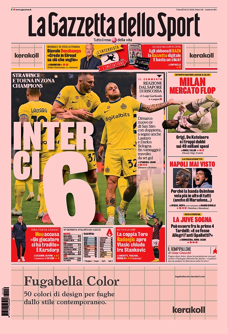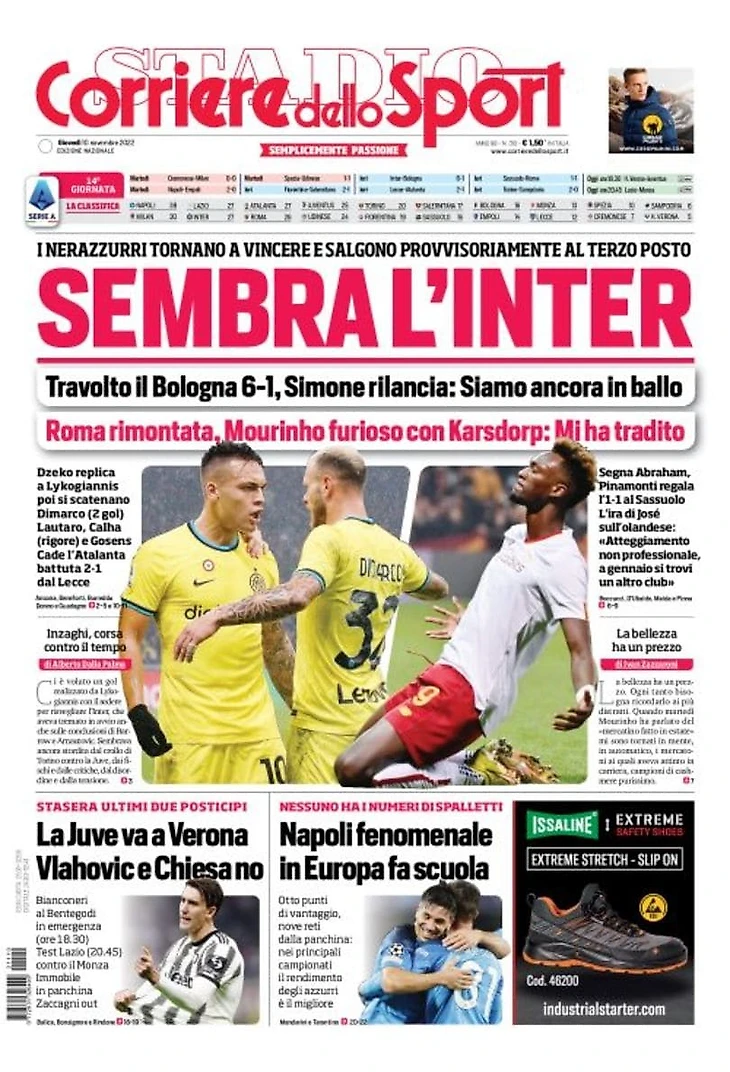 Напоминает «Интер». Заголовки Gazzetta, TuttoSport и Corriere за 10 ноября