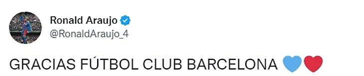 «Спасибо, футбольный клуб «Барселона» ❤️💙», — написал Рональд Араухо в соцсетях после того, как он получил вызов в сборную Уругвая на ЧМ-2022.