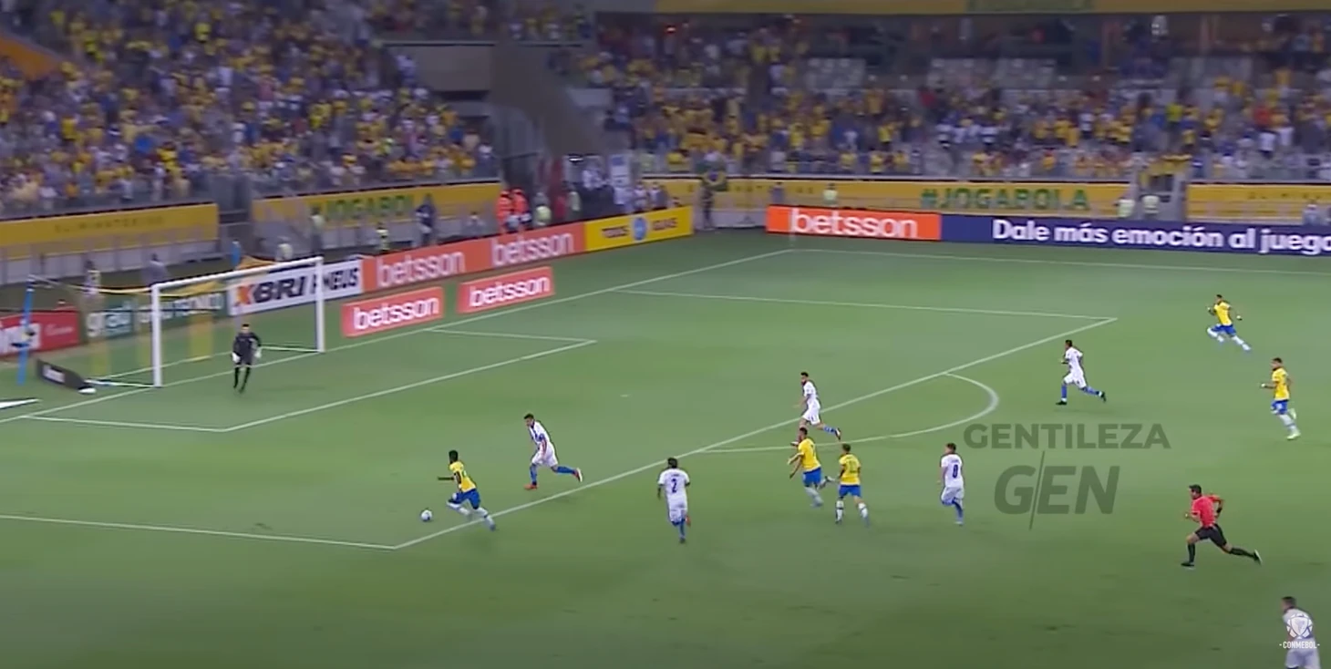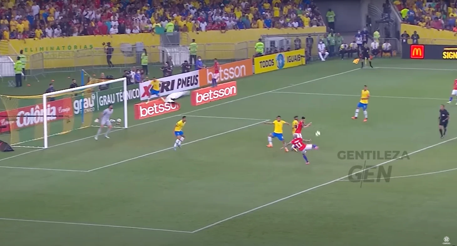 Вообще, нельзя не заметить, как бразильцы любят перебрасывать мяч через соперников. Фильм про Пеле не врал – это у них в крови.