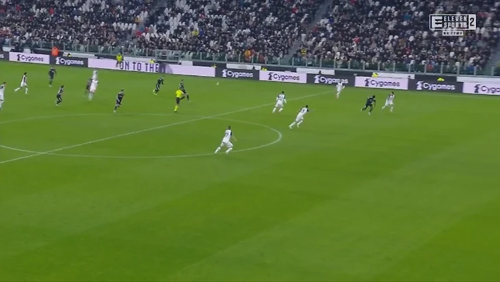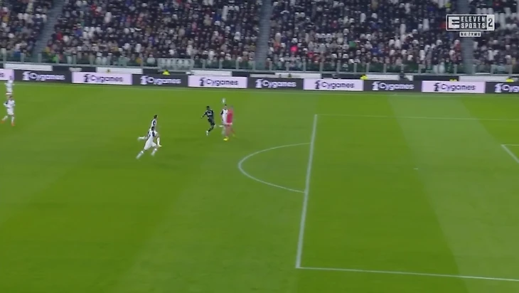 Первый тайм медленно шел к перерыву, когда Адриен Рабьо шикарно отобрал мяч у Сергея Милинковича-Савича, а затем увидел рывок Мойзе Кина. Бриллиантовый пас!