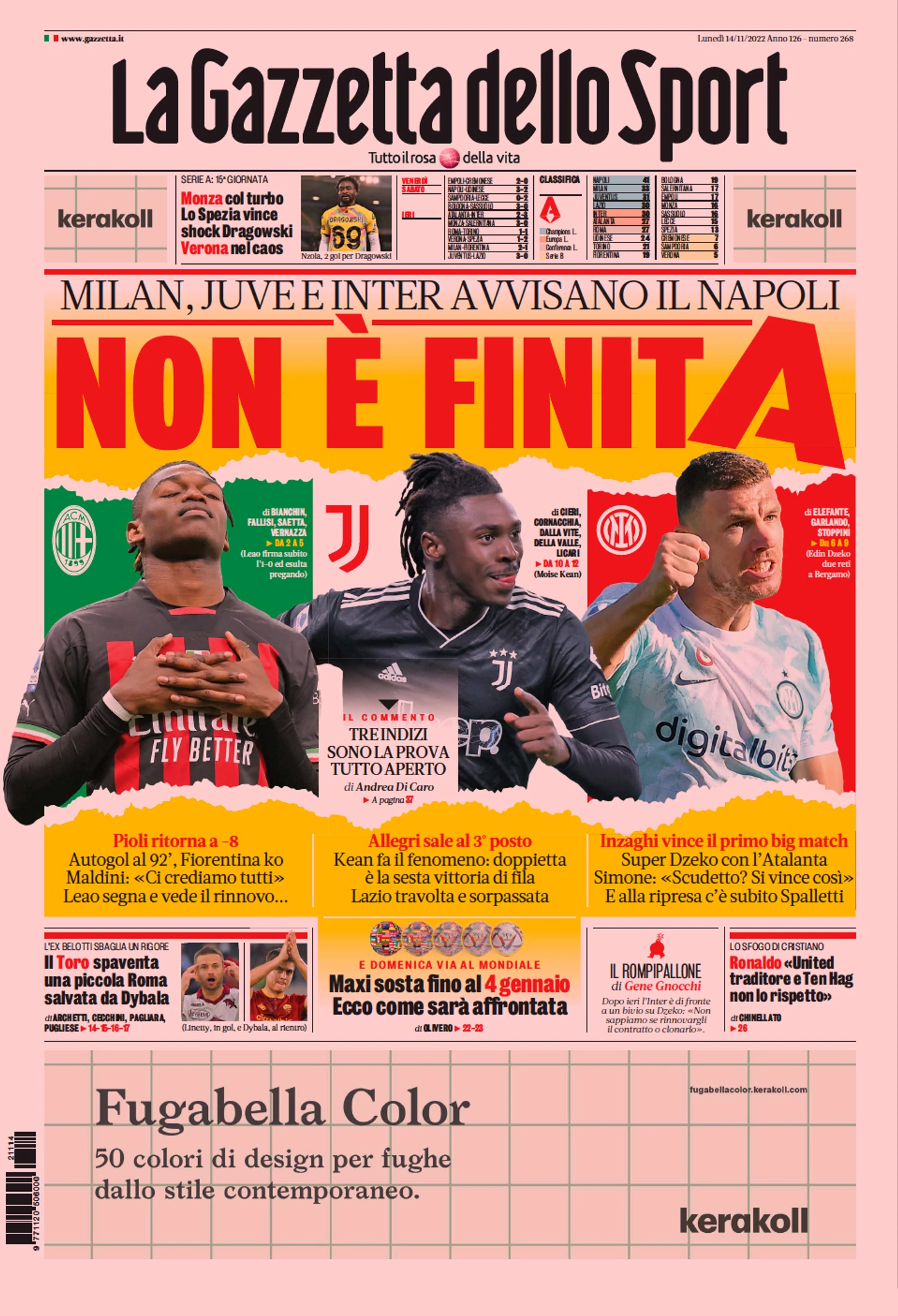 Это не конец. Заголовки Gazzetta, TuttoSport и Corriere за 14 ноября