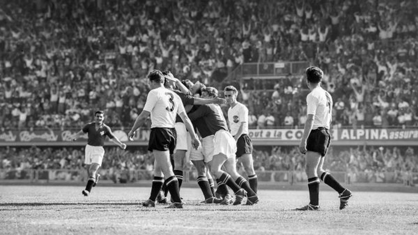 Hitzeschlacht von Lausanne (Жаркая битва в Лозанне), как ее окрестили газеты, по-прежнему остается самой результативной игрой в истории чемпионатов мира (то же гордое звание носит ее первый тайм), первым матчем на мировых первенствах, где команда сделала камбэк, проигрывая с разницей в три мяча, и третьим, в котором футболисты обеих команд отметились хет-триками. На этом великолепный ЧМ-1954 рекорды переписывать не закончил, а все четыре матчи четвертьфиналов, оба полуфинала и финал соревнования достойны отдельных и очень подробных (примерно как этот) рассказов. Впрочем, эту историю я уже рассказал в целой книге об этом первенстве.