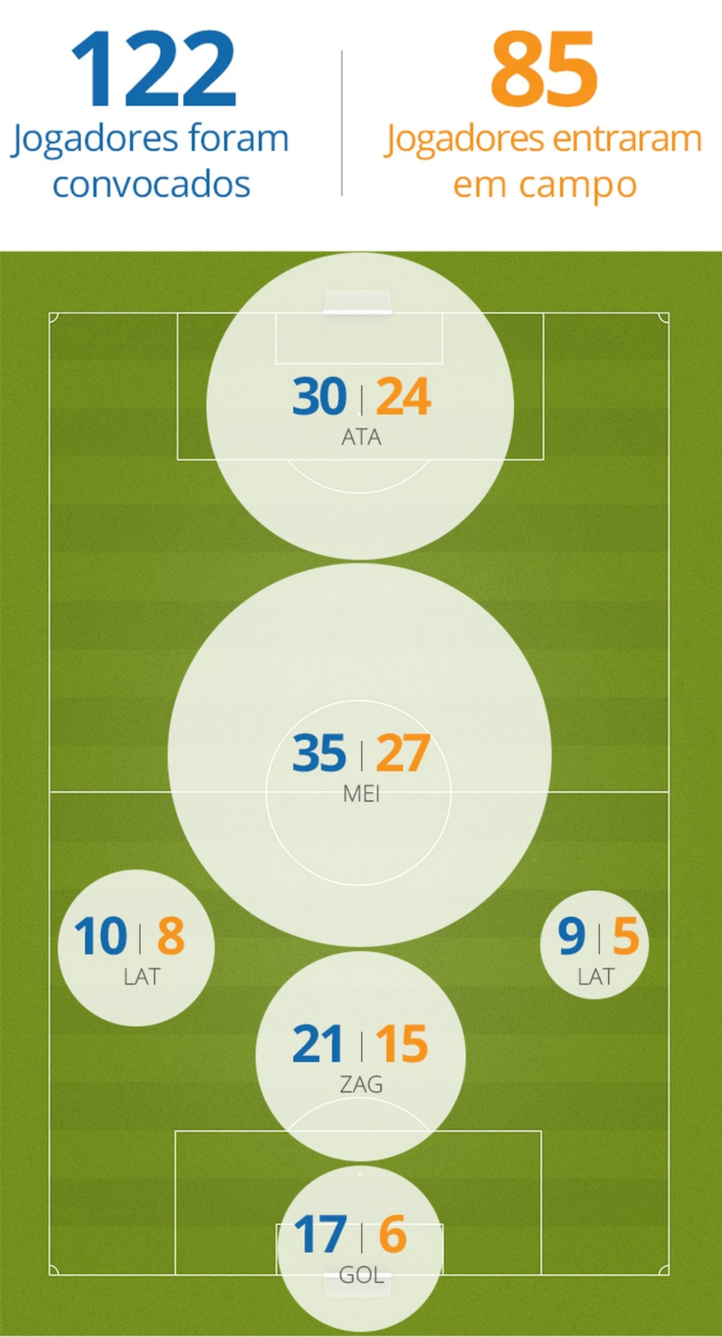 Вызвано 122 игрока из них игровое время получили 85 человек.
