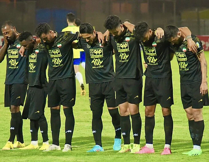 Внутри Ирана футболистам высказываться намного сложнее, поэтому болельщики считывают знаки. Например, побритая голова и полностью черный наряд от тренера «Персеполиса» (лидер иранского чемпионата) или вот такое траурное празднование гола в исполнении «Сепахана».