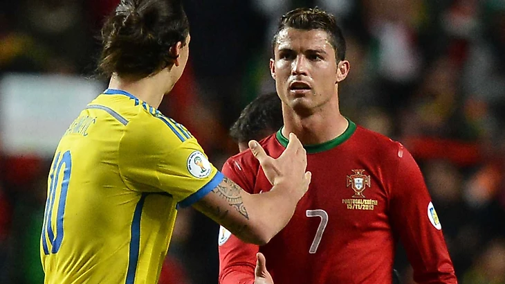 Жеребьёвка стыковых матчей за право сыграть на Чемпионате Мира 2014 года свела между собой сборные Швеции и Португалии. Златан Ибрагимович сошёлся в схватке с Криштиану Роналду. Шведский форвард в двухматчевом противостоянии сумел отличиться дважды, причём один из мячей забил со штрафного. Португалец в свою очередь превзошёл в 2 раза достижения Златана. 4 гола Криро – и Португалия на кубке мира. «Этот чемпионат мира можно не смотреть, ведь на нем не будет меня», – скажет впоследствии высокомерный Ибра.
