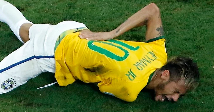 Последний матч ¼, в котором встречались Бразилия и Колумбия, получится самым результативным на этой стадии, а также самым грубым (54 фола). Бразильские фанаты наслаждались футболом, в частности колотушкой Давида Луиса, вплоть до 86-ой минуты, пока крайний защитник колумбийцев Хуан Суньига не нанёс травму лидеру «пентакампеонов» Неймару. Нападающего унесли на носилках, а через пару часов выяснялся страшный диагноз –перелом одного из поясничных позвонков. Это означало, что турнир для молодого игрока был окончен.