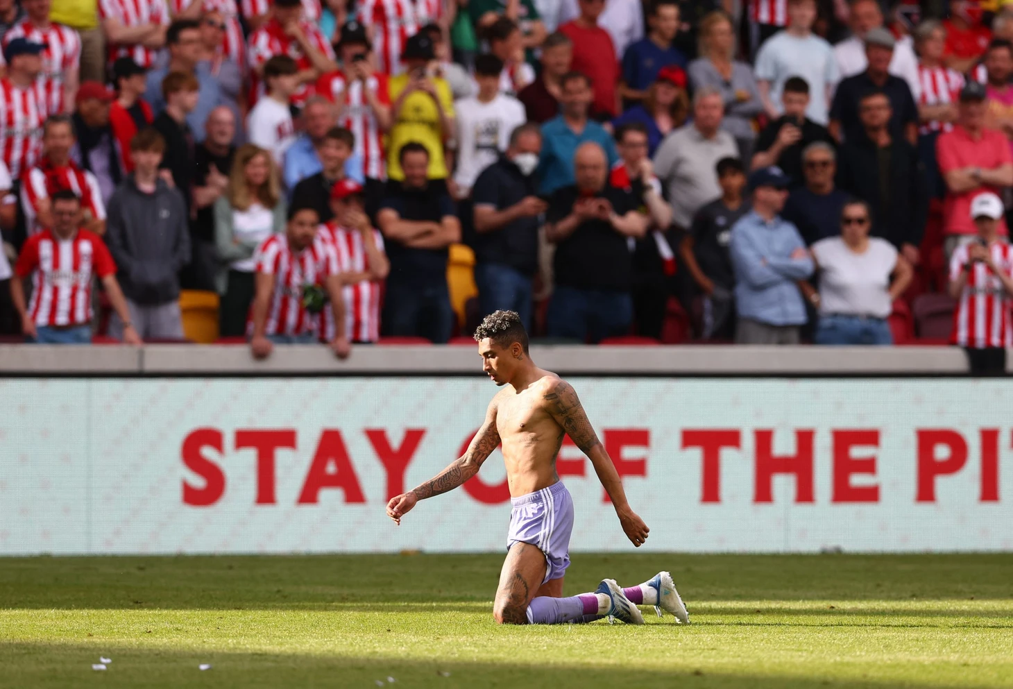 Еще до перехода в «Барсу» Рафинья помог своей тогдашней команде, «Лидсу», избежать вылета из АПЛ. В конце сезона 2021/22 «Лидс» обыграл «Брентфорд» со счетом 2:1, а бразилец, забивший первый гол, прошел все поле «Брентфорда» на коленях.
