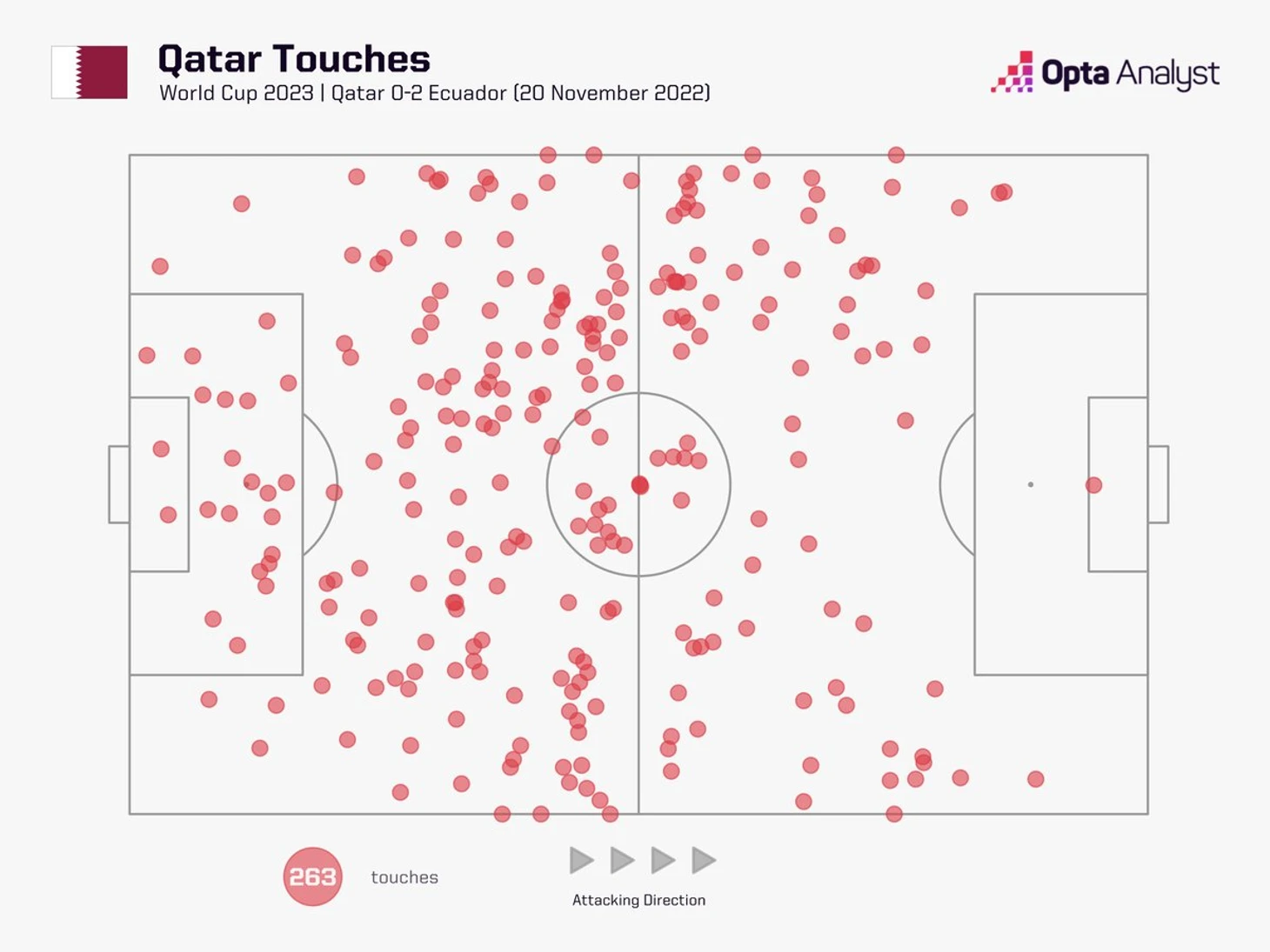 Показательная статистика: у катарцев ушло 49 минут и 53 секунды, чтобы впервые встретиться с мячом в штрафной Эквадора (но, кстати, это был неплохой момент).