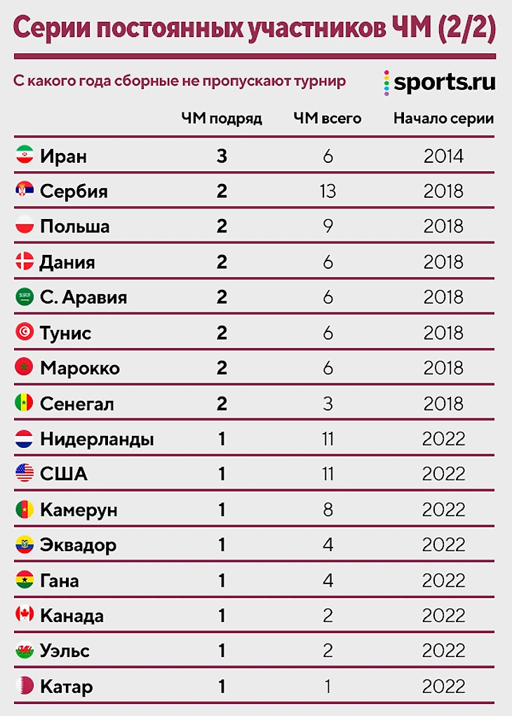 • Как же странно видеть Нидерланды в самом низу картинки. У сборной 11 участий в ЧМ, но турнир в России она пропустила.