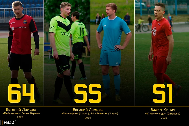 И, наконец, снайперские достижения Евгения Лямцева – это просто космос: 11 мячей за матч, 64 за чемпионат (2.46 в среднем за игру) и уже 408 (!) в 1 дивизионе. Переписал все индивидуальные рекорды. К тому же ему принадлежит рекорд по количеству выигранных снайперских гонок (6 раз).