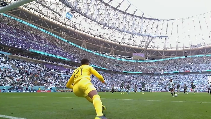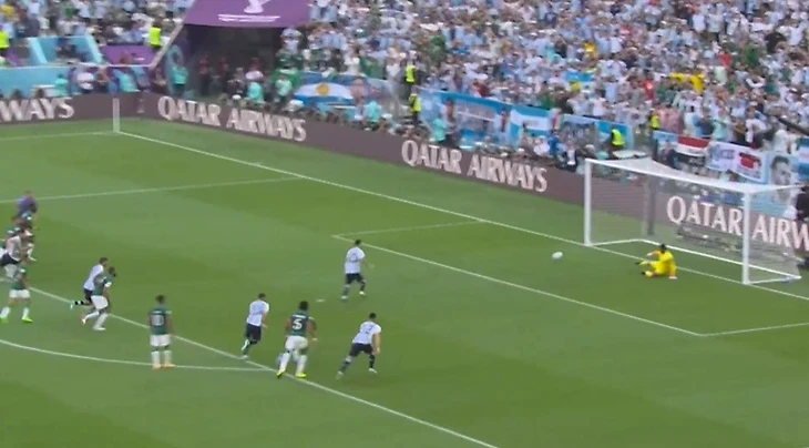 Сборная Аргентина получила право на пробитие пенальти на 9-й минуте матча с Саудовской Аравией после того, как Леандро Паредеса завалили в штрафной.