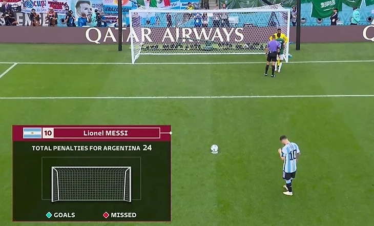 На 10-й минуте Месси несильно ударил в левый нижний угол, а вратарь Мохаммед Аль-Овайс не угадал направление удара и прыгнул в правый угол.