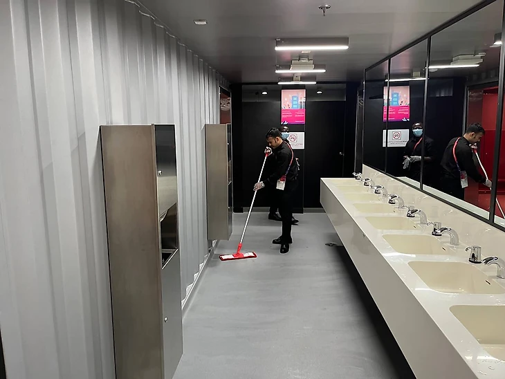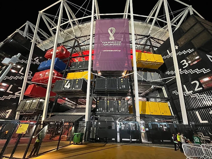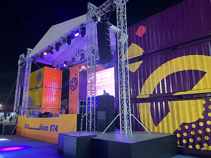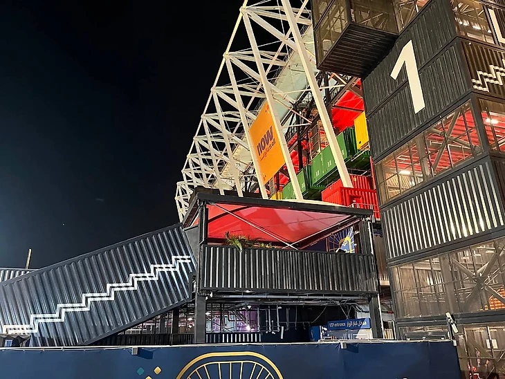 Стадион 974 полностью построен из морских контейнеров. Лифты, туалеты, палатки с едой и сцена на фан-зоне