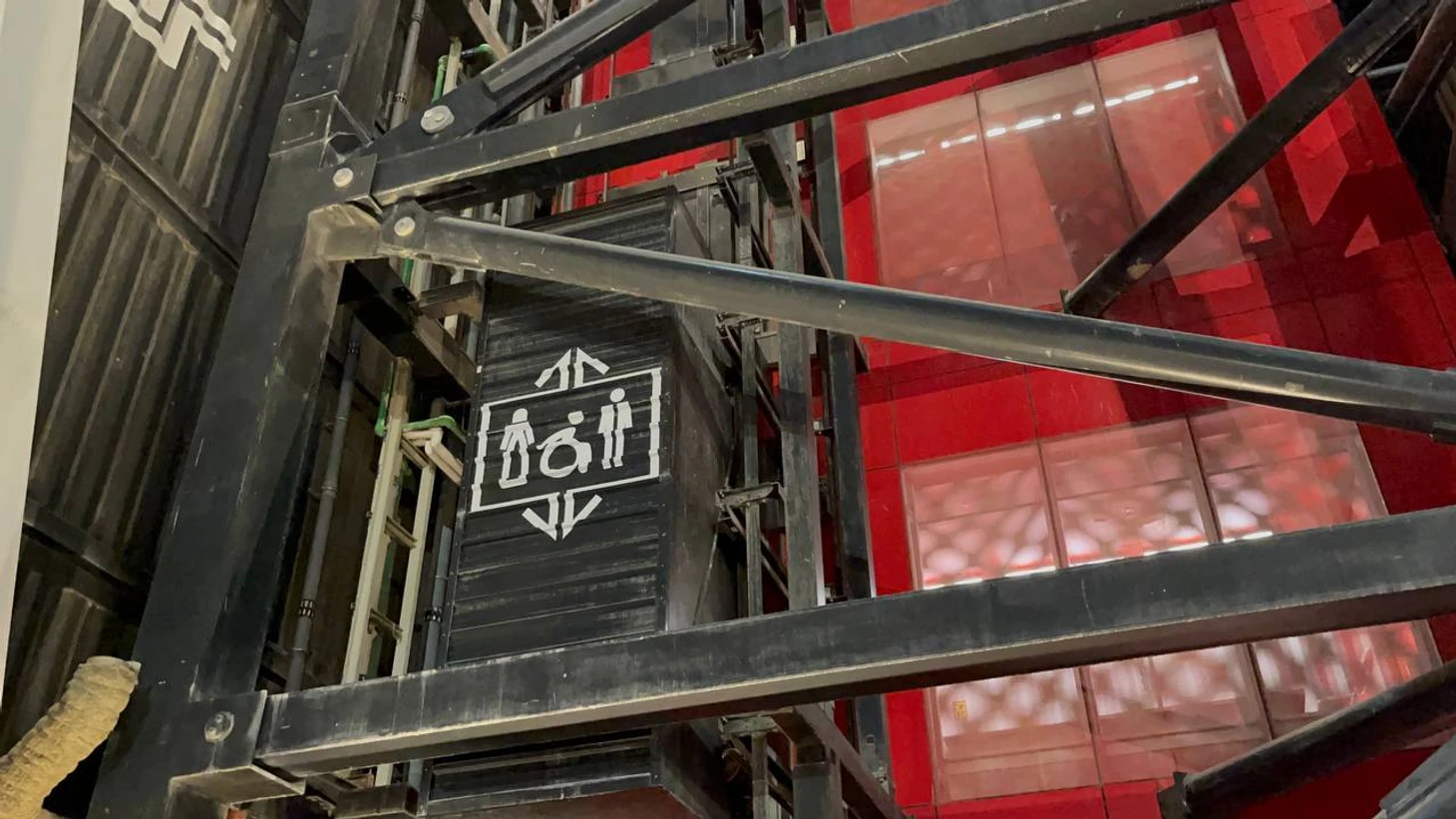 Поднимаемся по контейнерному лифту, разглядывая контейнер. Как вы думаете, что видим дальше? Конечно, контейнерный коридор.