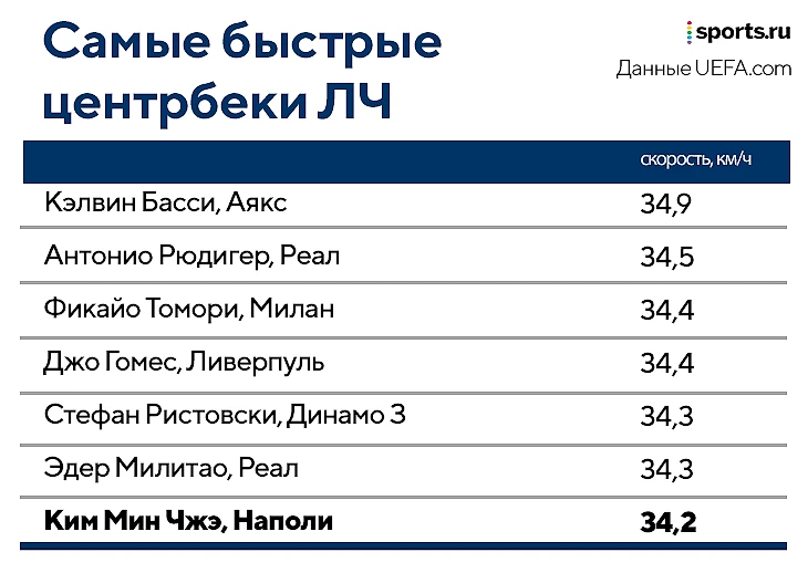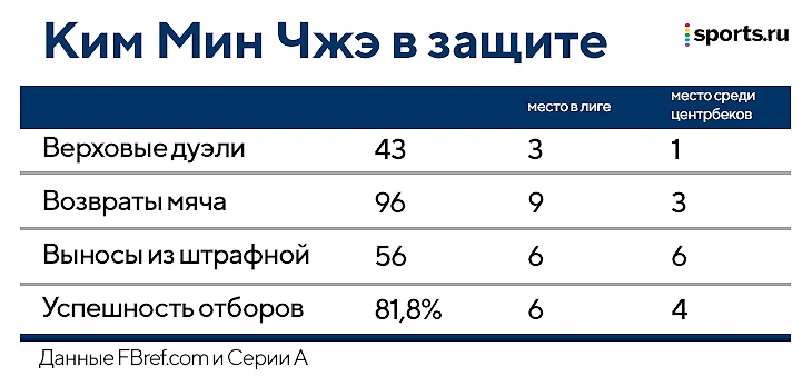 При этом Ким удивительно быстр – резче Кулибали. Сейчас он один из самых скоростных защитников Серии А. На групповой стадии ЛЧ кореец разогнался до 34,2 км/ч – это 7-й результат среди центрбеков.