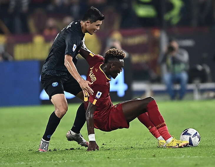 Ярче всего он проявил это качество против «Ромы». Римляне закрылись в позиционной защите и выходили вперед через длинные забросы – а там двойка неаполитанцев оставалась против троих очень качественных соперников: Дзаньоло, Пеллегрини и Абрахама. Ким нивелировал численное меньшинство. Он раздавил Абрахама, который должен был цепляться за верховых мячи, причем сделал это очень умно: лишил его времени и пространства и обезоруживал на приеме, а редкие ошибки мгновенно исправлял – пользовался преимуществом в силе и либо выдавливал Тэмми к флангу, либо просто сминал.
