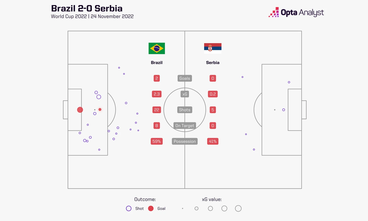 Бразилия спокойно довела матч до победы, могла забивать еще. По крайней мере по количеству точных ударов Бразилия поставила промежуточный рекорд этого ЧМ