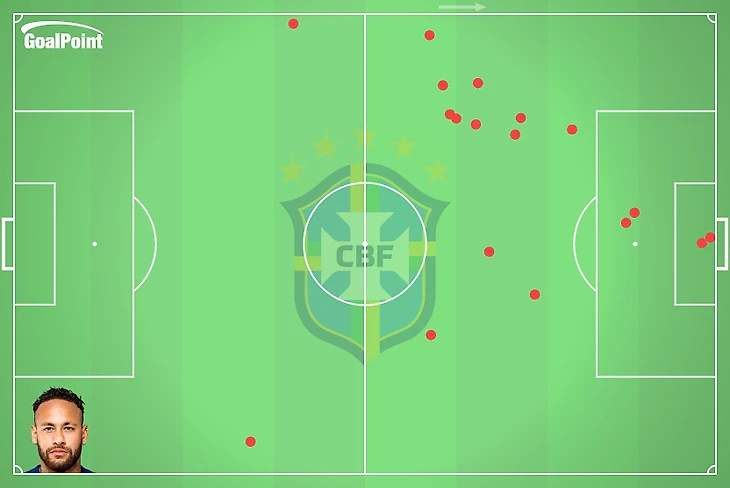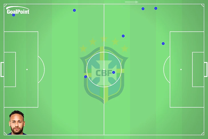 Обратите внимание как был забит первый гол. Селесао пытается развить атаку через фланг Рафиньи, Неймар теряет мяч. Тиаго Силва выдвигается высоко, поджимая соперника и овладевая мячом
